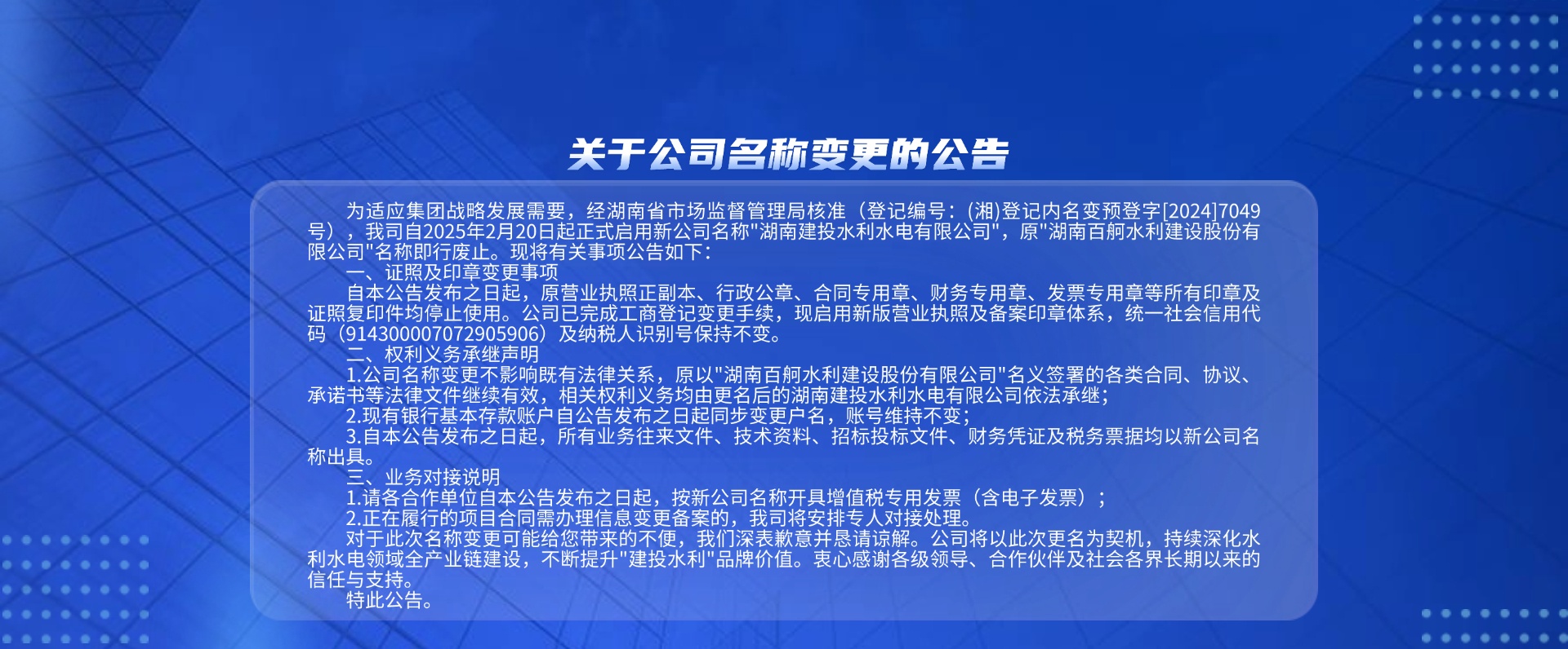 湖南建投水利水電有限公司是大型千億級省屬國企湖南建設投資集團旗下二級子公司。